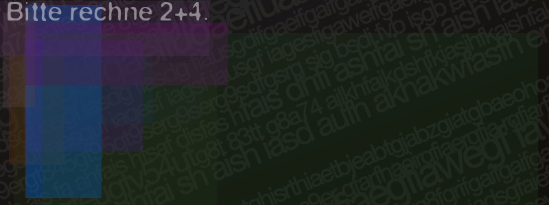 Die Visuelle Bestätigung hilft dabei automatische Spambots und Scripte von den Diensten dieses Forums abzuhalten. Derartige Scripte sind normalerweise nicht in der Lage den untenstehenden Code zu erkennen. Bitte geben Sie also in das untenstehende Feld die Buchstaben und Zahlen ein, die Sie in dem Bild erkennen können oder beantworten Sie die angezeigte Frage.