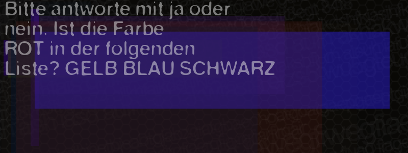 Die Visuelle Bestätigung hilft dabei automatische Spambots und Scripte von den Diensten dieses Forums abzuhalten. Derartige Scripte sind normalerweise nicht in der Lage den untenstehenden Code zu erkennen. Bitte geben Sie also in das untenstehende Feld die Buchstaben und Zahlen ein, die Sie in dem Bild erkennen können oder beantworten Sie die angezeigte Frage.