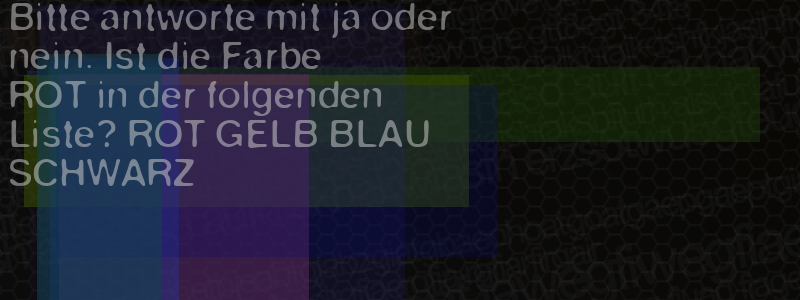 Die Visuelle Bestätigung hilft dabei automatische Spambots und Scripte von den Diensten dieses Forums abzuhalten. Derartige Scripte sind normalerweise nicht in der Lage den untenstehenden Code zu erkennen. Bitte geben Sie also in das untenstehende Feld die Buchstaben und Zahlen ein, die Sie in dem Bild erkennen können oder beantworten Sie die angezeigte Frage.