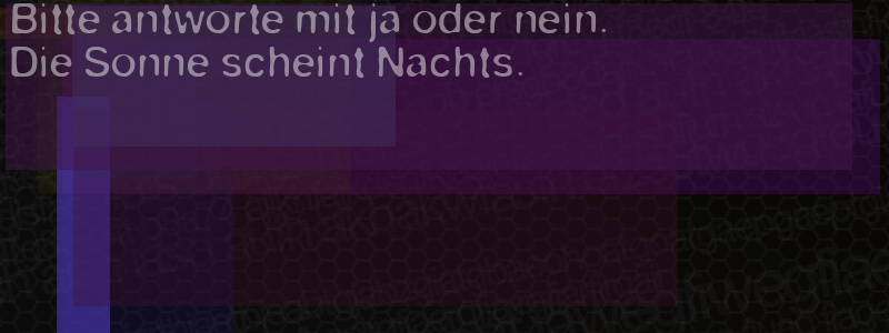 Die Visuelle Bestätigung hilft dabei automatische Spambots und Scripte von den Diensten dieses Forums abzuhalten. Derartige Scripte sind normalerweise nicht in der Lage den untenstehenden Code zu erkennen. Bitte geben Sie also in das untenstehende Feld die Buchstaben und Zahlen ein, die Sie in dem Bild erkennen können oder beantworten Sie die angezeigte Frage.