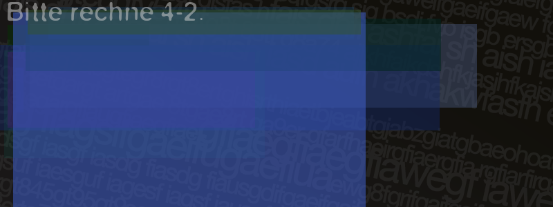 Die Visuelle Bestätigung hilft dabei automatische Spambots und Scripte von den Diensten dieses Forums abzuhalten. Derartige Scripte sind normalerweise nicht in der Lage den untenstehenden Code zu erkennen. Bitte geben Sie also in das untenstehende Feld die Buchstaben und Zahlen ein, die Sie in dem Bild erkennen können oder beantworten Sie die angezeigte Frage.