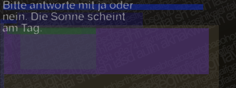 Die Visuelle Bestätigung hilft dabei automatische Spambots und Scripte von den Diensten dieses Forums abzuhalten. Derartige Scripte sind normalerweise nicht in der Lage den untenstehenden Code zu erkennen. Bitte geben Sie also in das untenstehende Feld die Buchstaben und Zahlen ein, die Sie in dem Bild erkennen können oder beantworten Sie die angezeigte Frage.