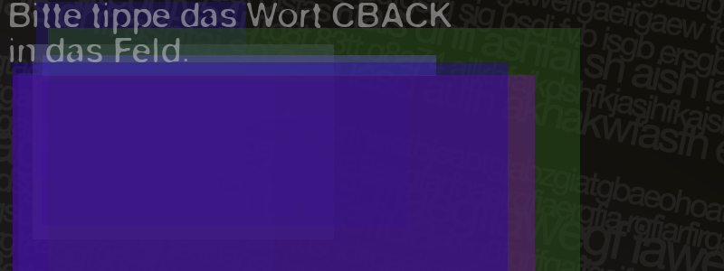 Die Visuelle Bestätigung hilft dabei automatische Spambots und Scripte von den Diensten dieses Forums abzuhalten. Derartige Scripte sind normalerweise nicht in der Lage den untenstehenden Code zu erkennen. Bitte geben Sie also in das untenstehende Feld die Buchstaben und Zahlen ein, die Sie in dem Bild erkennen können oder beantworten Sie die angezeigte Frage.