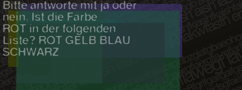 Die Visuelle Bestätigung hilft dabei automatische Spambots und Scripte von den Diensten dieses Forums abzuhalten. Derartige Scripte sind normalerweise nicht in der Lage den untenstehenden Code zu erkennen. Bitte geben Sie also in das untenstehende Feld die Buchstaben und Zahlen ein, die Sie in dem Bild erkennen können oder beantworten Sie die angezeigte Frage.