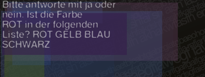 Die Visuelle Bestätigung hilft dabei automatische Spambots und Scripte von den Diensten dieses Forums abzuhalten. Derartige Scripte sind normalerweise nicht in der Lage den untenstehenden Code zu erkennen. Bitte geben Sie also in das untenstehende Feld die Buchstaben und Zahlen ein, die Sie in dem Bild erkennen können oder beantworten Sie die angezeigte Frage.