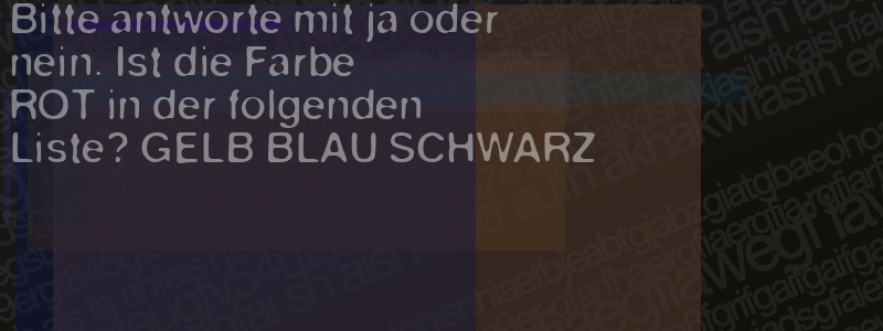 Die Visuelle Bestätigung hilft dabei automatische Spambots und Scripte von den Diensten dieses Forums abzuhalten. Derartige Scripte sind normalerweise nicht in der Lage den untenstehenden Code zu erkennen. Bitte geben Sie also in das untenstehende Feld die Buchstaben und Zahlen ein, die Sie in dem Bild erkennen können oder beantworten Sie die angezeigte Frage.