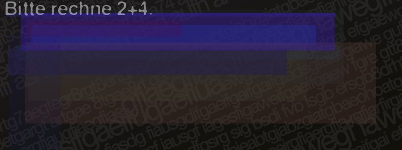 Die Visuelle Bestätigung hilft dabei automatische Spambots und Scripte von den Diensten dieses Forums abzuhalten. Derartige Scripte sind normalerweise nicht in der Lage den untenstehenden Code zu erkennen. Bitte geben Sie also in das untenstehende Feld die Buchstaben und Zahlen ein, die Sie in dem Bild erkennen können oder beantworten Sie die angezeigte Frage.