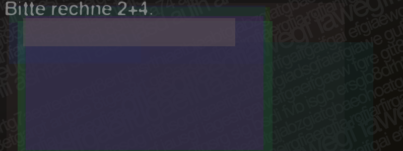 Die Visuelle Bestätigung hilft dabei automatische Spambots und Scripte von den Diensten dieses Forums abzuhalten. Derartige Scripte sind normalerweise nicht in der Lage den untenstehenden Code zu erkennen. Bitte geben Sie also in das untenstehende Feld die Buchstaben und Zahlen ein, die Sie in dem Bild erkennen können oder beantworten Sie die angezeigte Frage.