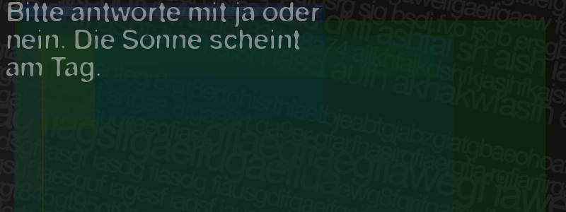 Die Visuelle Bestätigung hilft dabei automatische Spambots und Scripte von den Diensten dieses Forums abzuhalten. Derartige Scripte sind normalerweise nicht in der Lage den untenstehenden Code zu erkennen. Bitte geben Sie also in das untenstehende Feld die Buchstaben und Zahlen ein, die Sie in dem Bild erkennen können oder beantworten Sie die angezeigte Frage.
