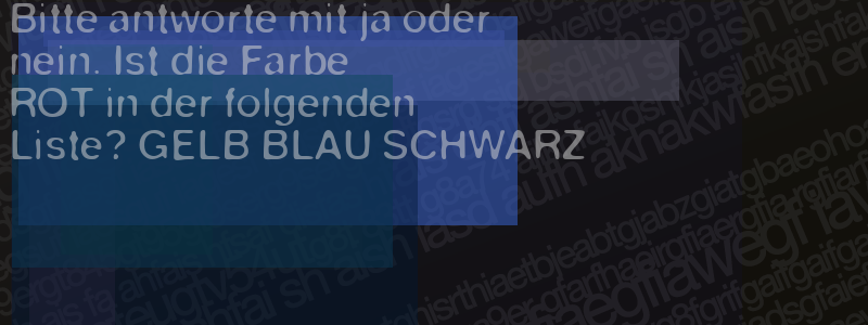 Die Visuelle Bestätigung hilft dabei automatische Spambots und Scripte von den Diensten dieses Forums abzuhalten. Derartige Scripte sind normalerweise nicht in der Lage den untenstehenden Code zu erkennen. Bitte geben Sie also in das untenstehende Feld die Buchstaben und Zahlen ein, die Sie in dem Bild erkennen können oder beantworten Sie die angezeigte Frage.