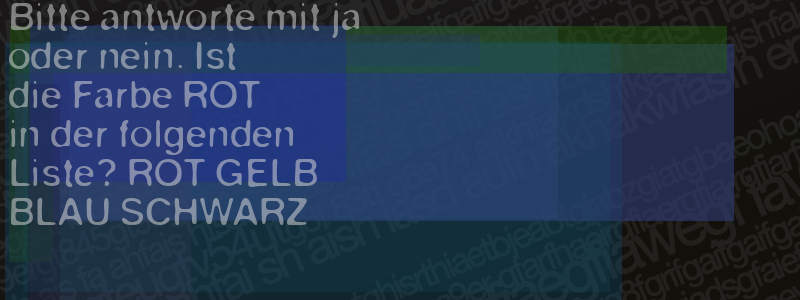 Die Visuelle Bestätigung hilft dabei automatische Spambots und Scripte von den Diensten dieses Forums abzuhalten. Derartige Scripte sind normalerweise nicht in der Lage den untenstehenden Code zu erkennen. Bitte geben Sie also in das untenstehende Feld die Buchstaben und Zahlen ein, die Sie in dem Bild erkennen können oder beantworten Sie die angezeigte Frage.