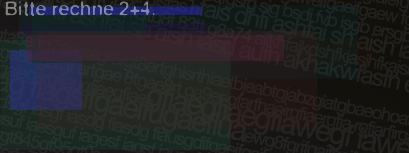 Die Visuelle Bestätigung hilft dabei automatische Spambots und Scripte von den Diensten dieses Forums abzuhalten. Derartige Scripte sind normalerweise nicht in der Lage den untenstehenden Code zu erkennen. Bitte geben Sie also in das untenstehende Feld die Buchstaben und Zahlen ein, die Sie in dem Bild erkennen können oder beantworten Sie die angezeigte Frage.