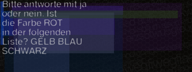 Die Visuelle Bestätigung hilft dabei automatische Spambots und Scripte von den Diensten dieses Forums abzuhalten. Derartige Scripte sind normalerweise nicht in der Lage den untenstehenden Code zu erkennen. Bitte geben Sie also in das untenstehende Feld die Buchstaben und Zahlen ein, die Sie in dem Bild erkennen können oder beantworten Sie die angezeigte Frage.