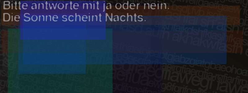 Die Visuelle Bestätigung hilft dabei automatische Spambots und Scripte von den Diensten dieses Forums abzuhalten. Derartige Scripte sind normalerweise nicht in der Lage den untenstehenden Code zu erkennen. Bitte geben Sie also in das untenstehende Feld die Buchstaben und Zahlen ein, die Sie in dem Bild erkennen können oder beantworten Sie die angezeigte Frage.