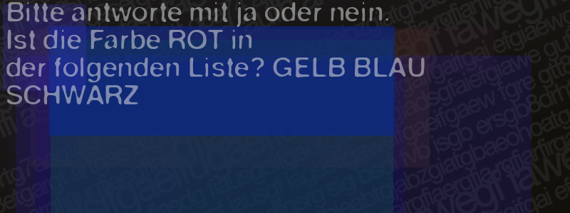 Die Visuelle Bestätigung hilft dabei automatische Spambots und Scripte von den Diensten dieses Forums abzuhalten. Derartige Scripte sind normalerweise nicht in der Lage den untenstehenden Code zu erkennen. Bitte geben Sie also in das untenstehende Feld die Buchstaben und Zahlen ein, die Sie in dem Bild erkennen können oder beantworten Sie die angezeigte Frage.