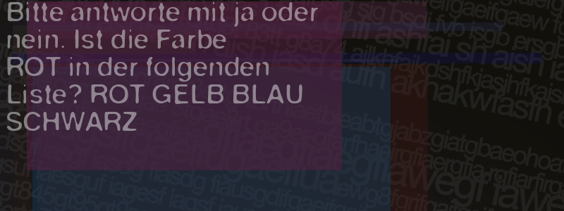 Die Visuelle Bestätigung hilft dabei automatische Spambots und Scripte von den Diensten dieses Forums abzuhalten. Derartige Scripte sind normalerweise nicht in der Lage den untenstehenden Code zu erkennen. Bitte geben Sie also in das untenstehende Feld die Buchstaben und Zahlen ein, die Sie in dem Bild erkennen können oder beantworten Sie die angezeigte Frage.