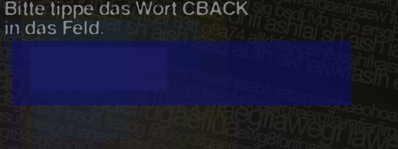 Die Visuelle Bestätigung hilft dabei automatische Spambots und Scripte von den Diensten dieses Forums abzuhalten. Derartige Scripte sind normalerweise nicht in der Lage den untenstehenden Code zu erkennen. Bitte geben Sie also in das untenstehende Feld die Buchstaben und Zahlen ein, die Sie in dem Bild erkennen können oder beantworten Sie die angezeigte Frage.