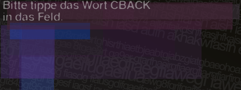 Die Visuelle Bestätigung hilft dabei automatische Spambots und Scripte von den Diensten dieses Forums abzuhalten. Derartige Scripte sind normalerweise nicht in der Lage den untenstehenden Code zu erkennen. Bitte geben Sie also in das untenstehende Feld die Buchstaben und Zahlen ein, die Sie in dem Bild erkennen können oder beantworten Sie die angezeigte Frage.