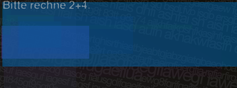Die Visuelle Bestätigung hilft dabei automatische Spambots und Scripte von den Diensten dieses Forums abzuhalten. Derartige Scripte sind normalerweise nicht in der Lage den untenstehenden Code zu erkennen. Bitte geben Sie also in das untenstehende Feld die Buchstaben und Zahlen ein, die Sie in dem Bild erkennen können oder beantworten Sie die angezeigte Frage.