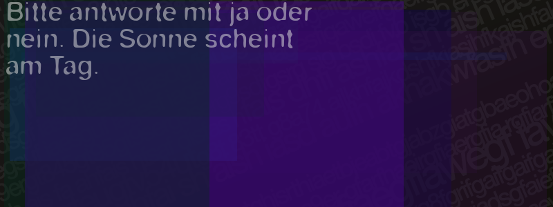 Die Visuelle Bestätigung hilft dabei automatische Spambots und Scripte von den Diensten dieses Forums abzuhalten. Derartige Scripte sind normalerweise nicht in der Lage den untenstehenden Code zu erkennen. Bitte geben Sie also in das untenstehende Feld die Buchstaben und Zahlen ein, die Sie in dem Bild erkennen können oder beantworten Sie die angezeigte Frage.
