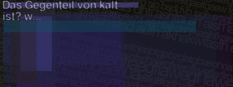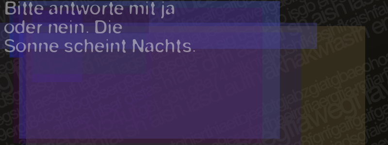 Die Visuelle Bestätigung hilft dabei automatische Spambots und Scripte von den Diensten dieses Forums abzuhalten. Derartige Scripte sind normalerweise nicht in der Lage den untenstehenden Code zu erkennen. Bitte geben Sie also in das untenstehende Feld die Buchstaben und Zahlen ein, die Sie in dem Bild erkennen können oder beantworten Sie die angezeigte Frage.