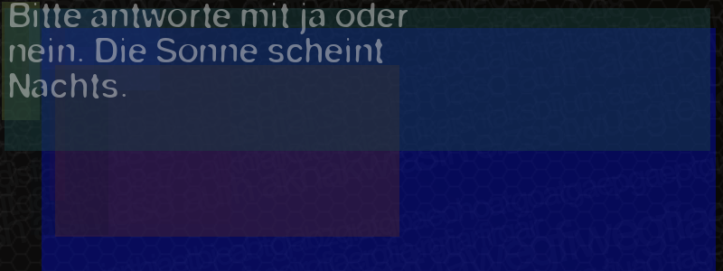 Die Visuelle Bestätigung hilft dabei automatische Spambots und Scripte von den Diensten dieses Forums abzuhalten. Derartige Scripte sind normalerweise nicht in der Lage den untenstehenden Code zu erkennen. Bitte geben Sie also in das untenstehende Feld die Buchstaben und Zahlen ein, die Sie in dem Bild erkennen können oder beantworten Sie die angezeigte Frage.