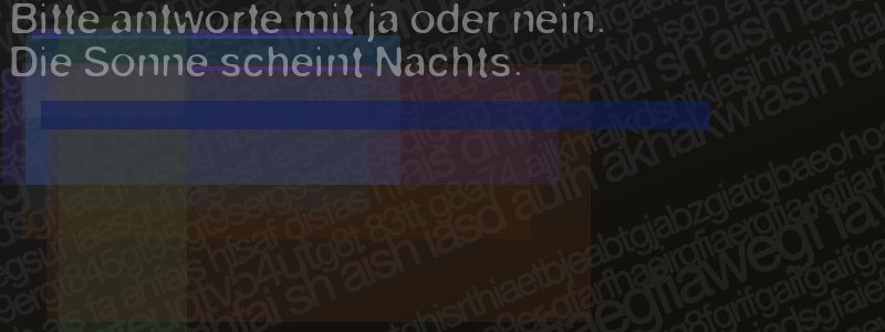 Die Visuelle Bestätigung hilft dabei automatische Spambots und Scripte von den Diensten dieses Forums abzuhalten. Derartige Scripte sind normalerweise nicht in der Lage den untenstehenden Code zu erkennen. Bitte geben Sie also in das untenstehende Feld die Buchstaben und Zahlen ein, die Sie in dem Bild erkennen können oder beantworten Sie die angezeigte Frage.