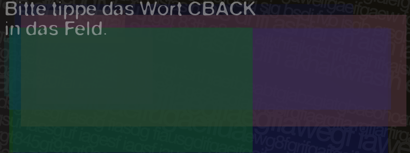 Die Visuelle Bestätigung hilft dabei automatische Spambots und Scripte von den Diensten dieses Forums abzuhalten. Derartige Scripte sind normalerweise nicht in der Lage den untenstehenden Code zu erkennen. Bitte geben Sie also in das untenstehende Feld die Buchstaben und Zahlen ein, die Sie in dem Bild erkennen können oder beantworten Sie die angezeigte Frage.