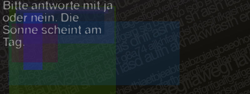 Die Visuelle Bestätigung hilft dabei automatische Spambots und Scripte von den Diensten dieses Forums abzuhalten. Derartige Scripte sind normalerweise nicht in der Lage den untenstehenden Code zu erkennen. Bitte geben Sie also in das untenstehende Feld die Buchstaben und Zahlen ein, die Sie in dem Bild erkennen können oder beantworten Sie die angezeigte Frage.