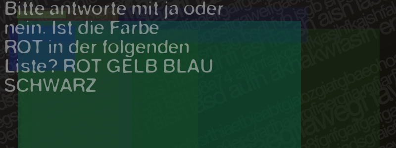 Die Visuelle Bestätigung hilft dabei automatische Spambots und Scripte von den Diensten dieses Forums abzuhalten. Derartige Scripte sind normalerweise nicht in der Lage den untenstehenden Code zu erkennen. Bitte geben Sie also in das untenstehende Feld die Buchstaben und Zahlen ein, die Sie in dem Bild erkennen können oder beantworten Sie die angezeigte Frage.