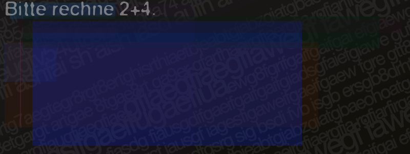 Die Visuelle Bestätigung hilft dabei automatische Spambots und Scripte von den Diensten dieses Forums abzuhalten. Derartige Scripte sind normalerweise nicht in der Lage den untenstehenden Code zu erkennen. Bitte geben Sie also in das untenstehende Feld die Buchstaben und Zahlen ein, die Sie in dem Bild erkennen können oder beantworten Sie die angezeigte Frage.