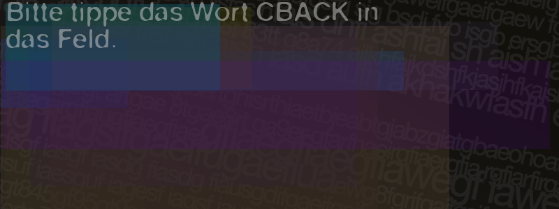 Die Visuelle Bestätigung hilft dabei automatische Spambots und Scripte von den Diensten dieses Forums abzuhalten. Derartige Scripte sind normalerweise nicht in der Lage den untenstehenden Code zu erkennen. Bitte geben Sie also in das untenstehende Feld die Buchstaben und Zahlen ein, die Sie in dem Bild erkennen können oder beantworten Sie die angezeigte Frage.