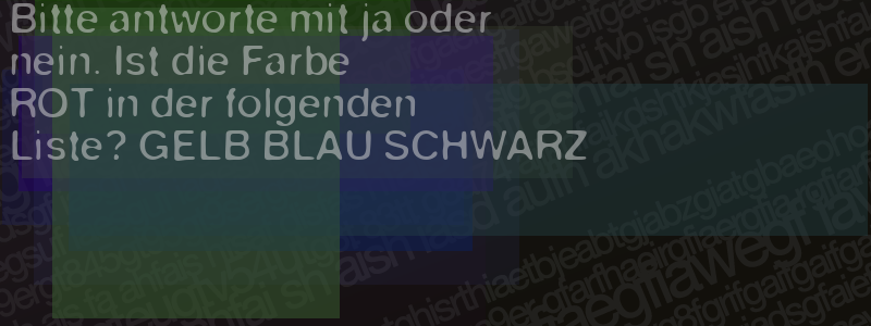 Die Visuelle Bestätigung hilft dabei automatische Spambots und Scripte von den Diensten dieses Forums abzuhalten. Derartige Scripte sind normalerweise nicht in der Lage den untenstehenden Code zu erkennen. Bitte geben Sie also in das untenstehende Feld die Buchstaben und Zahlen ein, die Sie in dem Bild erkennen können oder beantworten Sie die angezeigte Frage.
