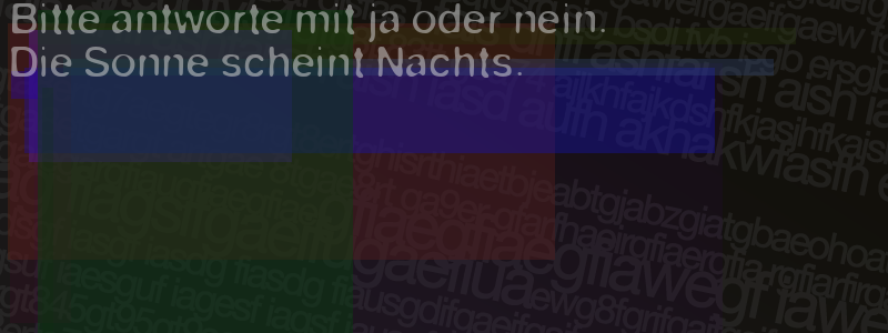 Die Visuelle Bestätigung hilft dabei automatische Spambots und Scripte von den Diensten dieses Forums abzuhalten. Derartige Scripte sind normalerweise nicht in der Lage den untenstehenden Code zu erkennen. Bitte geben Sie also in das untenstehende Feld die Buchstaben und Zahlen ein, die Sie in dem Bild erkennen können oder beantworten Sie die angezeigte Frage.