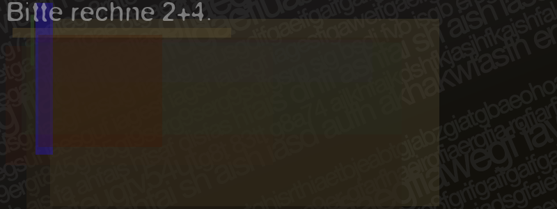 Die Visuelle Bestätigung hilft dabei automatische Spambots und Scripte von den Diensten dieses Forums abzuhalten. Derartige Scripte sind normalerweise nicht in der Lage den untenstehenden Code zu erkennen. Bitte geben Sie also in das untenstehende Feld die Buchstaben und Zahlen ein, die Sie in dem Bild erkennen können oder beantworten Sie die angezeigte Frage.