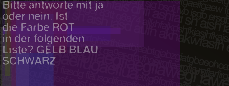Die Visuelle Bestätigung hilft dabei automatische Spambots und Scripte von den Diensten dieses Forums abzuhalten. Derartige Scripte sind normalerweise nicht in der Lage den untenstehenden Code zu erkennen. Bitte geben Sie also in das untenstehende Feld die Buchstaben und Zahlen ein, die Sie in dem Bild erkennen können oder beantworten Sie die angezeigte Frage.