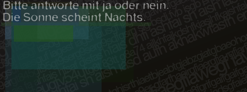Die Visuelle Bestätigung hilft dabei automatische Spambots und Scripte von den Diensten dieses Forums abzuhalten. Derartige Scripte sind normalerweise nicht in der Lage den untenstehenden Code zu erkennen. Bitte geben Sie also in das untenstehende Feld die Buchstaben und Zahlen ein, die Sie in dem Bild erkennen können oder beantworten Sie die angezeigte Frage.