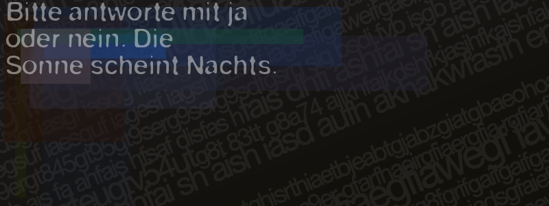 Die Visuelle Bestätigung hilft dabei automatische Spambots und Scripte von den Diensten dieses Forums abzuhalten. Derartige Scripte sind normalerweise nicht in der Lage den untenstehenden Code zu erkennen. Bitte geben Sie also in das untenstehende Feld die Buchstaben und Zahlen ein, die Sie in dem Bild erkennen können oder beantworten Sie die angezeigte Frage.