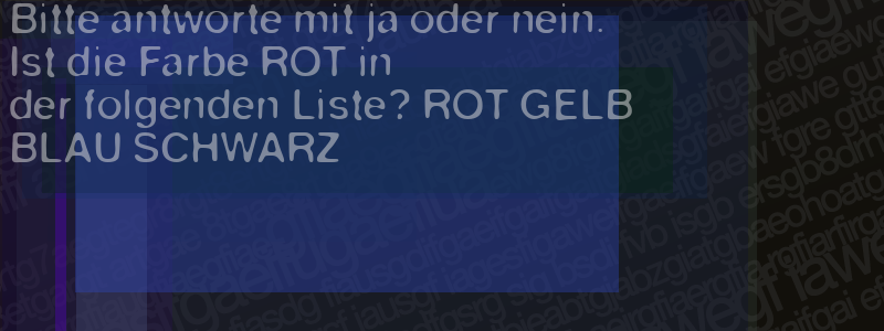 Die Visuelle Bestätigung hilft dabei automatische Spambots und Scripte von den Diensten dieses Forums abzuhalten. Derartige Scripte sind normalerweise nicht in der Lage den untenstehenden Code zu erkennen. Bitte geben Sie also in das untenstehende Feld die Buchstaben und Zahlen ein, die Sie in dem Bild erkennen können oder beantworten Sie die angezeigte Frage.