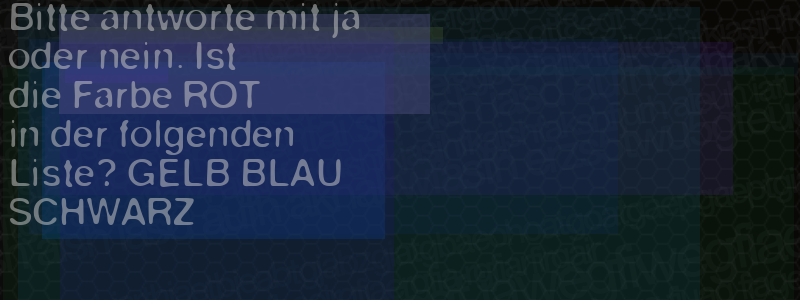 Die Visuelle Bestätigung hilft dabei automatische Spambots und Scripte von den Diensten dieses Forums abzuhalten. Derartige Scripte sind normalerweise nicht in der Lage den untenstehenden Code zu erkennen. Bitte geben Sie also in das untenstehende Feld die Buchstaben und Zahlen ein, die Sie in dem Bild erkennen können oder beantworten Sie die angezeigte Frage.