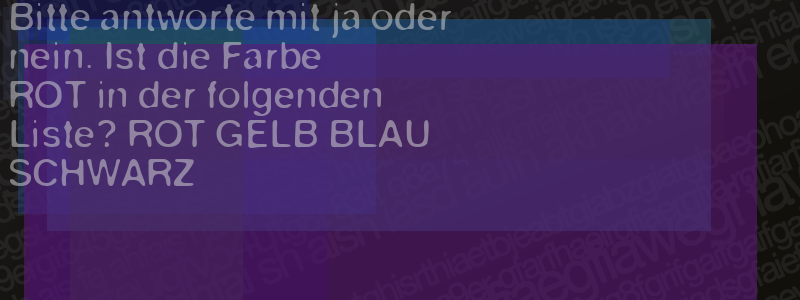 Die Visuelle Bestätigung hilft dabei automatische Spambots und Scripte von den Diensten dieses Forums abzuhalten. Derartige Scripte sind normalerweise nicht in der Lage den untenstehenden Code zu erkennen. Bitte geben Sie also in das untenstehende Feld die Buchstaben und Zahlen ein, die Sie in dem Bild erkennen können oder beantworten Sie die angezeigte Frage.