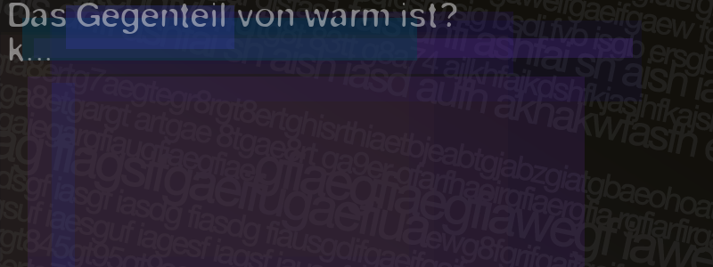 Die Visuelle Bestätigung hilft dabei automatische Spambots und Scripte von den Diensten dieses Forums abzuhalten. Derartige Scripte sind normalerweise nicht in der Lage den untenstehenden Code zu erkennen. Bitte geben Sie also in das untenstehende Feld die Buchstaben und Zahlen ein, die Sie in dem Bild erkennen können oder beantworten Sie die angezeigte Frage.
