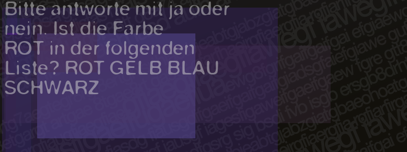 Die Visuelle Bestätigung hilft dabei automatische Spambots und Scripte von den Diensten dieses Forums abzuhalten. Derartige Scripte sind normalerweise nicht in der Lage den untenstehenden Code zu erkennen. Bitte geben Sie also in das untenstehende Feld die Buchstaben und Zahlen ein, die Sie in dem Bild erkennen können oder beantworten Sie die angezeigte Frage.
