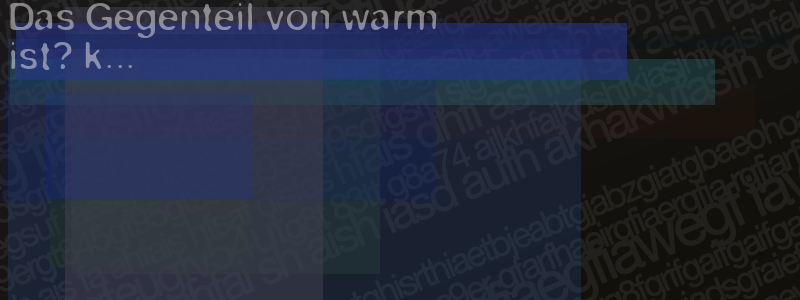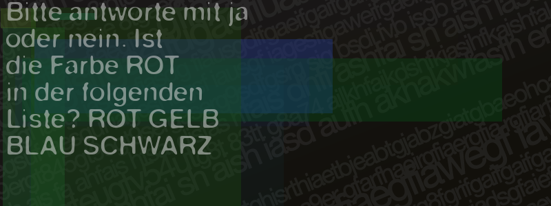 Die Visuelle Bestätigung hilft dabei automatische Spambots und Scripte von den Diensten dieses Forums abzuhalten. Derartige Scripte sind normalerweise nicht in der Lage den untenstehenden Code zu erkennen. Bitte geben Sie also in das untenstehende Feld die Buchstaben und Zahlen ein, die Sie in dem Bild erkennen können oder beantworten Sie die angezeigte Frage.