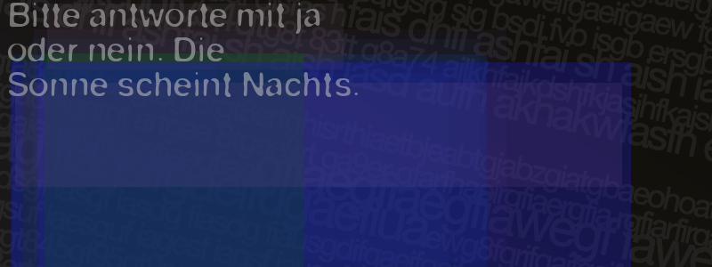 Die Visuelle Bestätigung hilft dabei automatische Spambots und Scripte von den Diensten dieses Forums abzuhalten. Derartige Scripte sind normalerweise nicht in der Lage den untenstehenden Code zu erkennen. Bitte geben Sie also in das untenstehende Feld die Buchstaben und Zahlen ein, die Sie in dem Bild erkennen können oder beantworten Sie die angezeigte Frage.