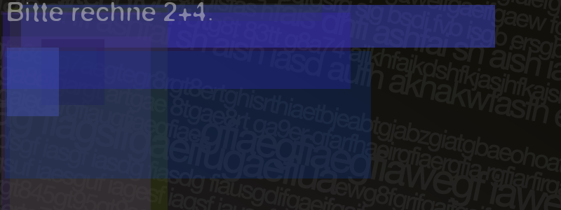 Die Visuelle Bestätigung hilft dabei automatische Spambots und Scripte von den Diensten dieses Forums abzuhalten. Derartige Scripte sind normalerweise nicht in der Lage den untenstehenden Code zu erkennen. Bitte geben Sie also in das untenstehende Feld die Buchstaben und Zahlen ein, die Sie in dem Bild erkennen können oder beantworten Sie die angezeigte Frage.