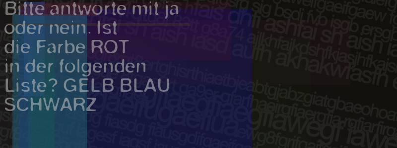 Die Visuelle Bestätigung hilft dabei automatische Spambots und Scripte von den Diensten dieses Forums abzuhalten. Derartige Scripte sind normalerweise nicht in der Lage den untenstehenden Code zu erkennen. Bitte geben Sie also in das untenstehende Feld die Buchstaben und Zahlen ein, die Sie in dem Bild erkennen können oder beantworten Sie die angezeigte Frage.