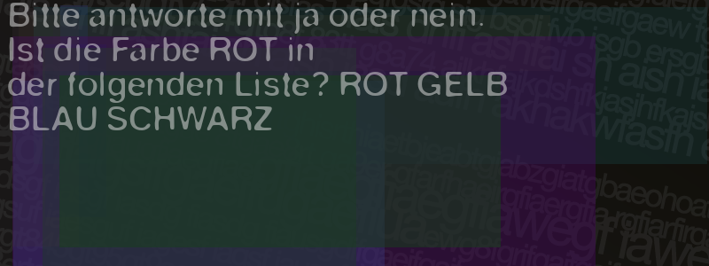 Die Visuelle Bestätigung hilft dabei automatische Spambots und Scripte von den Diensten dieses Forums abzuhalten. Derartige Scripte sind normalerweise nicht in der Lage den untenstehenden Code zu erkennen. Bitte geben Sie also in das untenstehende Feld die Buchstaben und Zahlen ein, die Sie in dem Bild erkennen können oder beantworten Sie die angezeigte Frage.