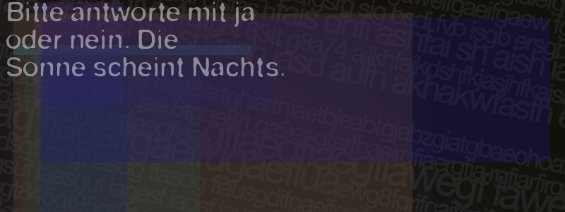 Die Visuelle Bestätigung hilft dabei automatische Spambots und Scripte von den Diensten dieses Forums abzuhalten. Derartige Scripte sind normalerweise nicht in der Lage den untenstehenden Code zu erkennen. Bitte geben Sie also in das untenstehende Feld die Buchstaben und Zahlen ein, die Sie in dem Bild erkennen können oder beantworten Sie die angezeigte Frage.