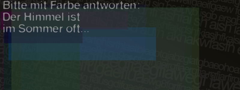 Die Visuelle Bestätigung hilft dabei automatische Spambots und Scripte von den Diensten dieses Forums abzuhalten. Derartige Scripte sind normalerweise nicht in der Lage den untenstehenden Code zu erkennen. Bitte geben Sie also in das untenstehende Feld die Buchstaben und Zahlen ein, die Sie in dem Bild erkennen können oder beantworten Sie die angezeigte Frage.